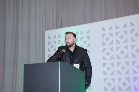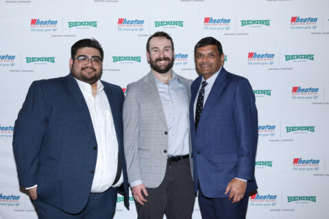AMS Relocation, Inc., COO Austin Eversole (center) poses at the Van Line Summit & Awards Gala with Operations Manager Jorge Ramirez (left) and CFO Yogi Bhakta (right).
